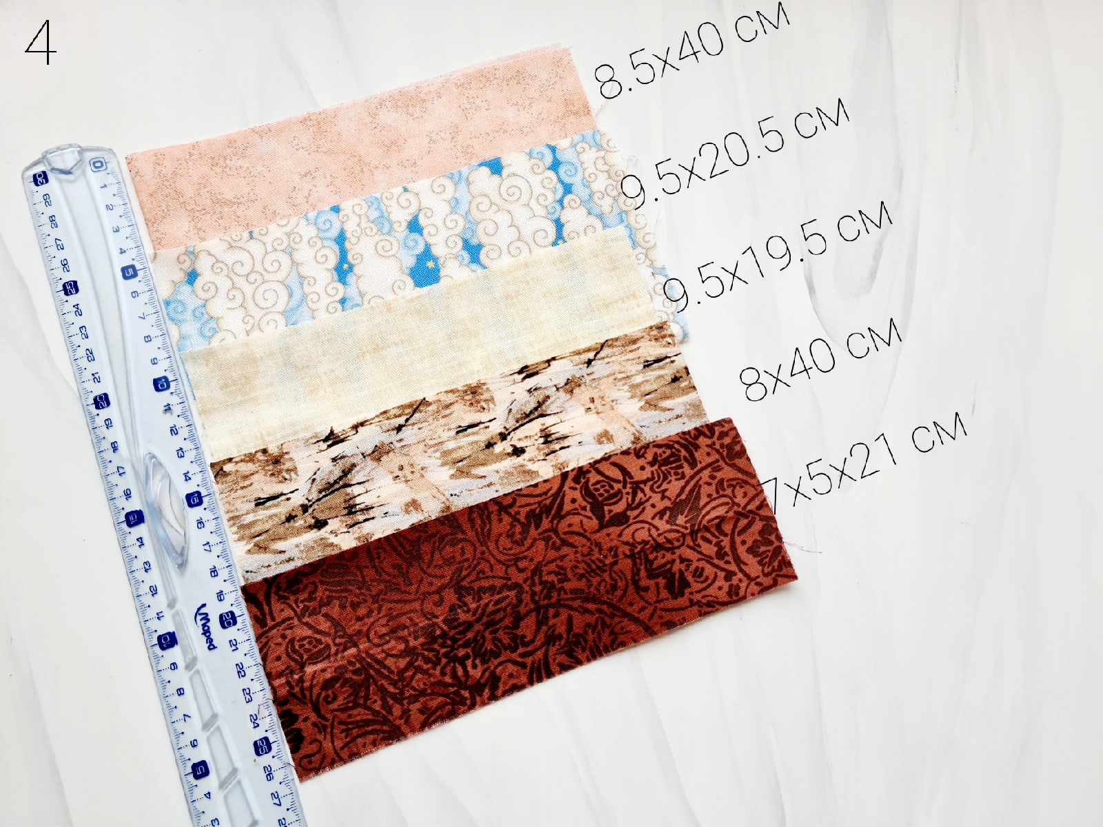 Посмотрим на универсальный набор начинающей фетромастерицы. По количеству 2-4 полосы будет достаточно. Ко всем тканям и сочетаниям примеряем правило: фон - это фон. Он: