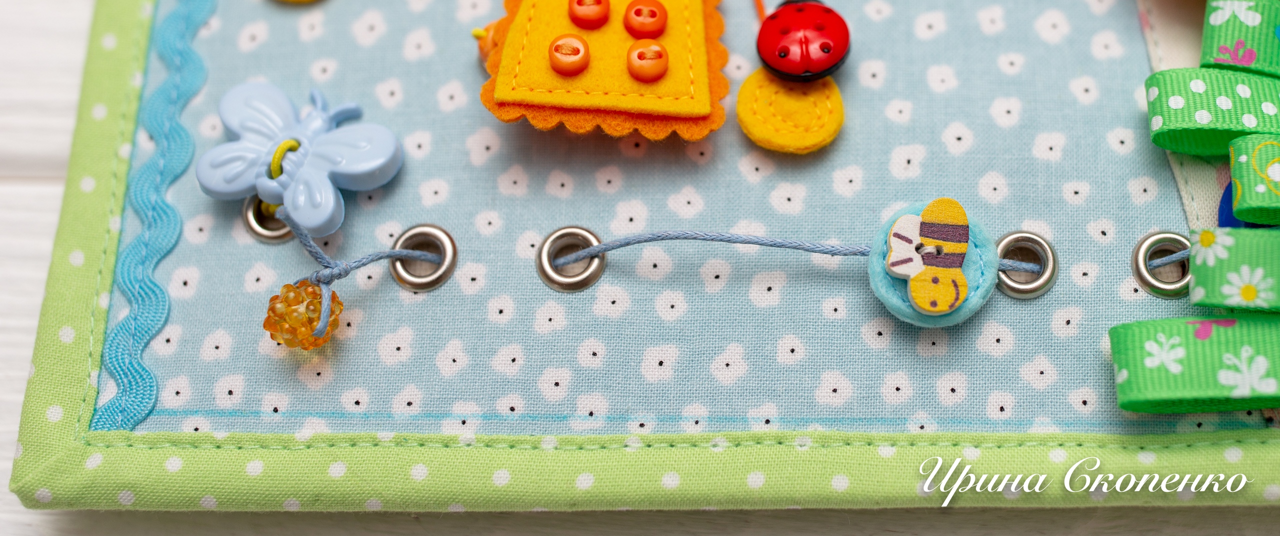 1. Основы первых сюжетов я укрепляла по схеме: ткань + флизелин + паутинка + синтепон. Страницы получались слишком мягкими. В них утопала строчка и получался эффект пышного простёганного изделия, что совсем не совпадало с моим представлением о качествах развивающей книги. И если мягкость основы я ещё готова была принять, так как не знала иной реальности, то с пушистостью примириться совсем не могла. Окантовка и идеальные уголки казались далёкой несбыточной реальностью. Образца укреплённых основ не сохранилось, я их попросту выбросила.